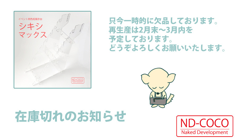 シキシマックスなども、それを即売会に持ち込みたいという野望なのです。商業フィギュアのお披露目が、安っすいプラスチック製の台に乗ってたら、微妙じゃないですか。サークルスペースを、いかにショールーム化するか。ND-COCOの命題のひとつでもあります。